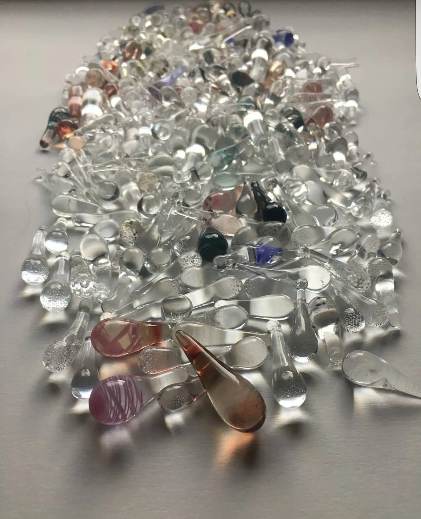 250 borosilicate glass tears handmade and donated to Southern Oregon University Native American Studies Department